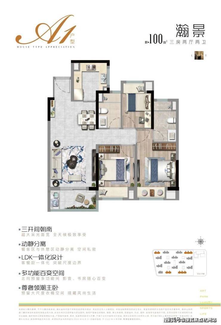 项目约100㎡3房2卫的户型把实用性做到了极致,总价虽低,但能满足业主从二人世界到二胎生活的全生命周期需求。