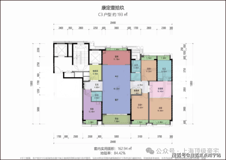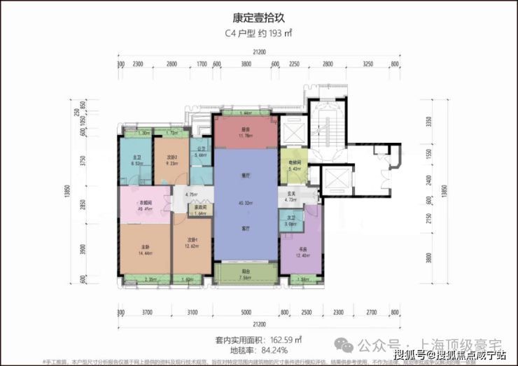 193㎡户型完全就是豪宅的大尺度!保守的说,可以跟市面上几乎所有230+㎡户型对标!