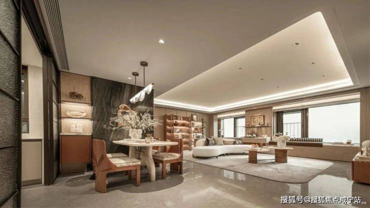目前样板间做的是开放式书房,这让整个客厅空间大大增加。