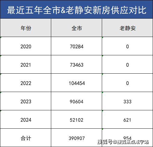 过去五年,全上海一共供应约39万套新房,位于老静安的仅954套,占总供应量的约0.24%,几近于无!