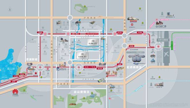 交通配套:绕城高速,嘉青松金线(规划中),山周公路(建设中)、赵重公路、嘉松中路(规划为快速路)、沪常高速、北青公路(计划拓宽)、示范区线(沪苏嘉城际线)、崧泽高架、地铁17号线。