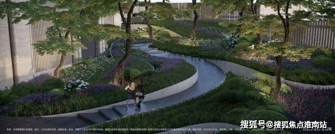 小区做了抬高处理,整体抬高,最高处超过7米,整个小区形成了错落的格局,在小区内部做台地景观。所谓台地,便是将小区内地面整体抬高,与市政道路形成一定的高度落差,这样建造的社区气势磅礴,居高临下。通过景观设计,将小区景打造成了立体台地花园,设置缓坡、下沉式花园、台阶等,让整体景观表现出立体层次感,错落有致。