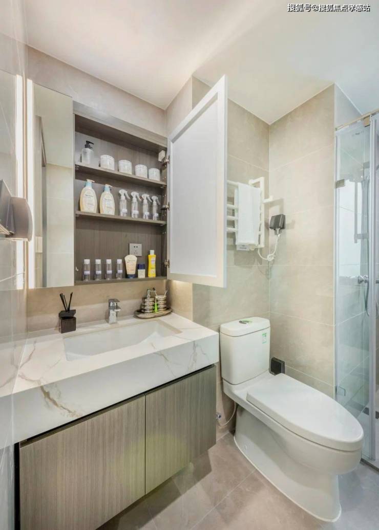 卫浴空间同样精彩「中海海上和集」售楼处电话:400-885-5420✨✨,采用了汉斯格雅龙头、花洒(主卫)、百朗暖风机、摩恩龙头等高端品牌,像隐形地漏、镜柜内置插座等细节都考量到位!