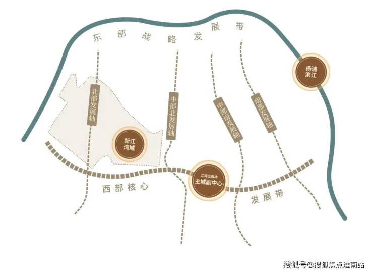 2022年,《上海市杨浦区单元规划》官宣,杨浦2035规划贯彻“一核一心两带四轴”战略布局,新江湾城占半成规划,即一心一带两轴。