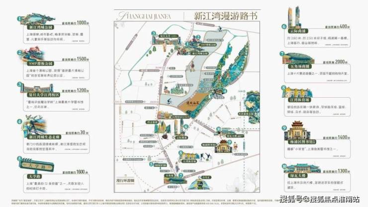 「1芯」·新江湾城蓝绿芯:新江湾城公园、SMP滑板公园、新江湾城社区文化中心组成。