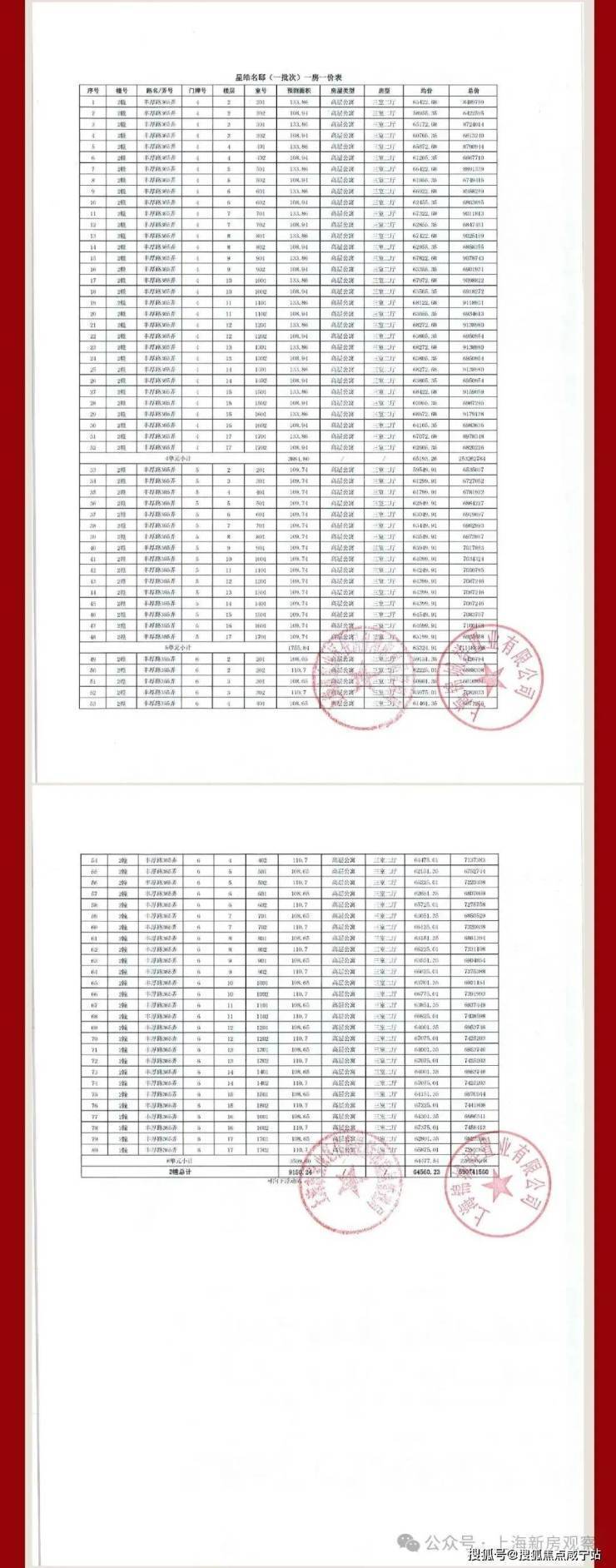 一房一价表如下: