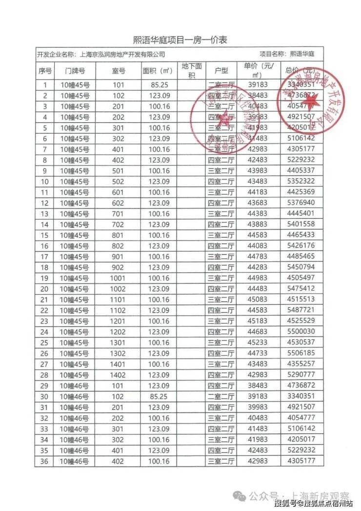 往下阅读项目一房一价表!