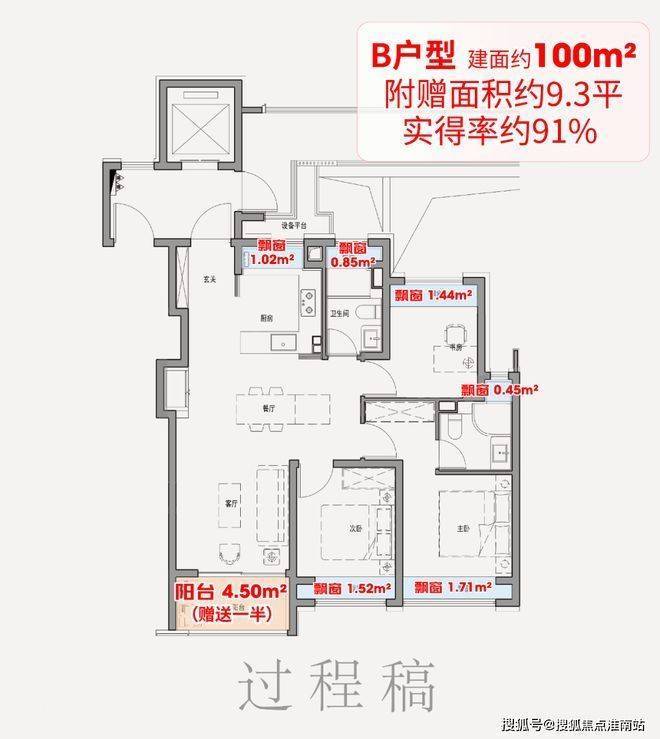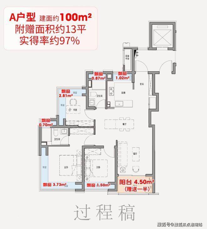 ①、6飘窗+阳台,赠送面积超9平!
