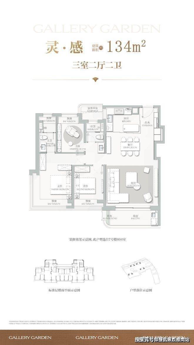 建面约134㎡3房2厅2卫▼