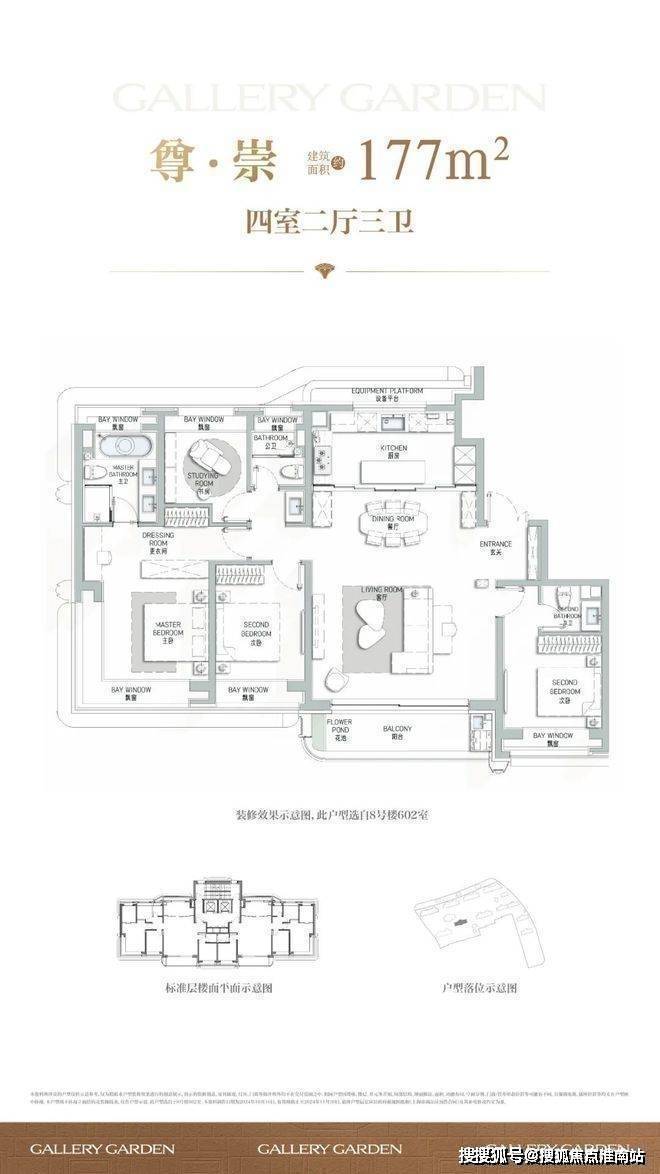 建面约177㎡户型是本批次的重点户型,总价约2300-2500万级, 改善一步到位,后续再无!阔朗的 四开间朝南设计+双套房设计,保证不同家庭成员起居的私密性。