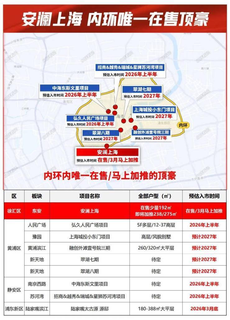 据小胖君全面摸排内环顶豪入市节奏,今年核心区顶豪供应稀缺,新天地等热门板块至少要等到明年才会有新动作。