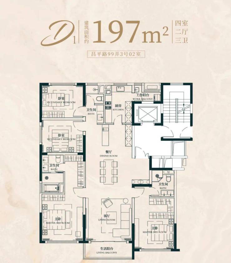 建面约197㎡4房2厅3卫