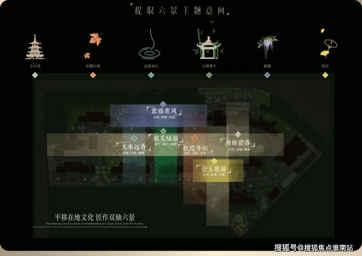 项目园林对轴线的运用同样出彩,堪称神来之笔的“双轴六境”,由“礼序归家轴+景观漫步轴”纵横交织,融在地文化,以“非遗”竹编形制,铺陈园林步道,同步淬取“州桥壁落”、“紫藤熏风”、“天水远香”等嘉定古今6景,提炼细节元素及专属色系,营造主题园林空间。