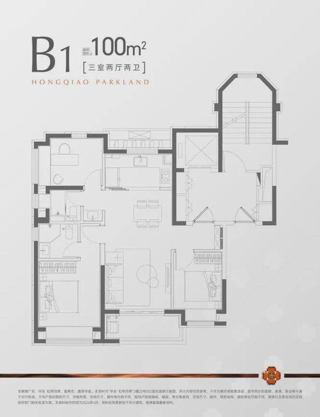 而在华发虹桥四季在售户型中,建面约100㎡的三房两厅两卫无疑是主力户型,它不仅是居住空间的组合,更是对品质生活的深度解读。它以其功能齐全的“飞机户型”格局和精装细节,成为备受市场青睐的明星产品。