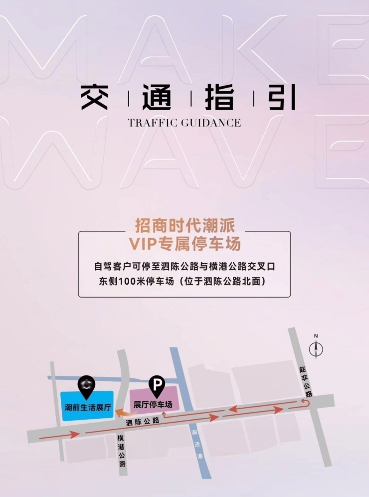 自驾来访请提前告知车牌信息,登记系统后,可自由出入“招商时代潮派”专属停车场;