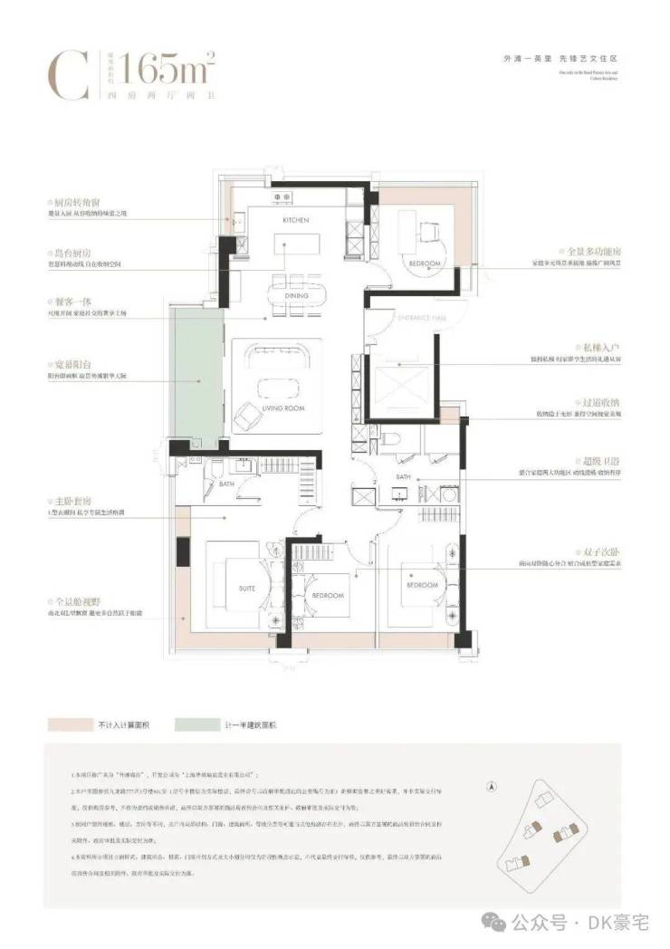 如果说 124户型是上车外滩的难得机会,那么建面约165㎡户型,则完全是另一种进阶的气场——它是一部真正意义上的“内环MVP”,在功能、视野、尺度、颜值力求每一个维度的全能,让豪宅不止于豪!