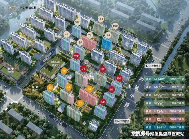 户型特色:74㎡两房采用 U 型厨房 + 4.5 米双联阳台,实现独立玄关设计;89㎡三房南北通透,南向面宽 10.2 米;127㎡四房双套房设计 + 7.2 米南向面宽,主卧 270° 转角飘窗;144㎡四房四开间朝南,客厅开间达 4.2 米。