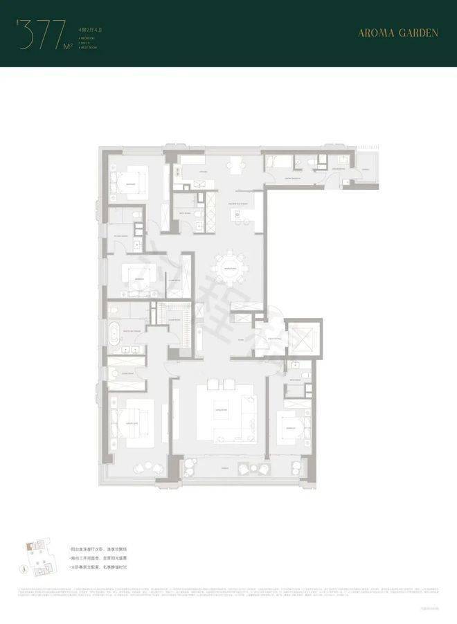 四个卧室均配备独立卫浴,隐私性与尊崇感拉满。