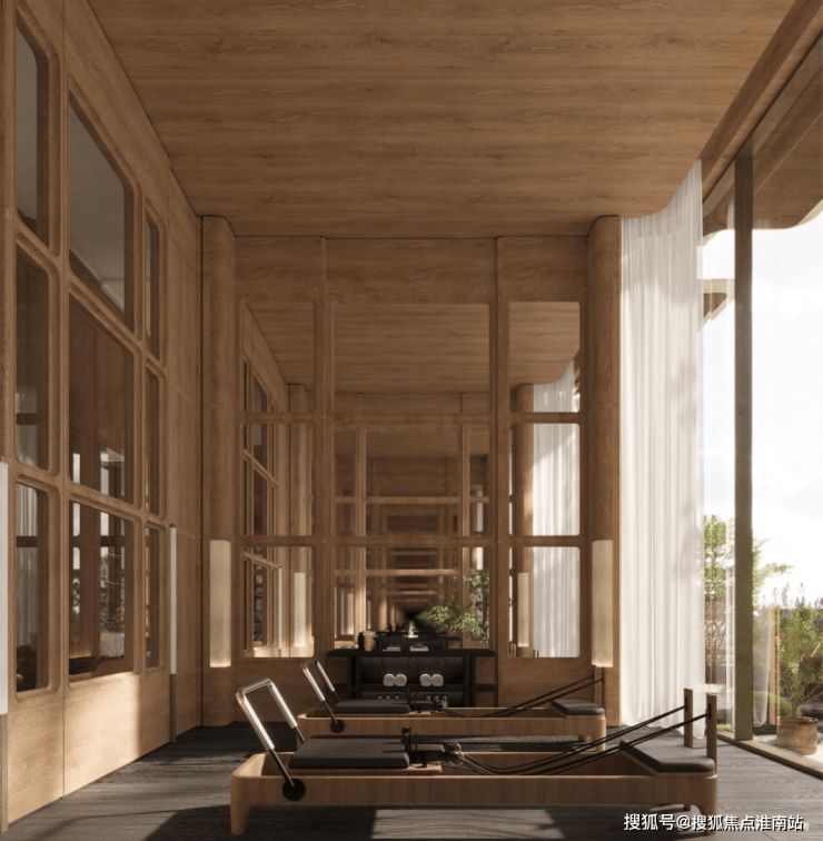 大面积的通透玻璃,让阳光与绿意自由流淌。专业的设备与静谧的氛围,旨在打造一个都市中难寻的身心修复站。在此舒展身体,仿佛与约3500㎡下沉式庭院、约13m垂直落差的自然园林同呼吸,实现从身体到精神的双重疗愈。