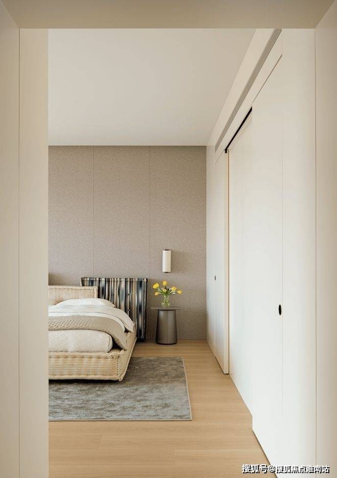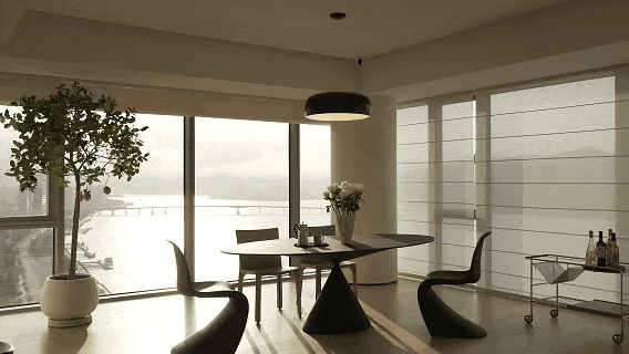 作为入户第一幕,玄关以极简姿态开启生活叙事,素净墙面如天然画布。清透支架托举着素白花瓶,植物姿态俏皮延展,成为连接户外与生活的温柔过渡。