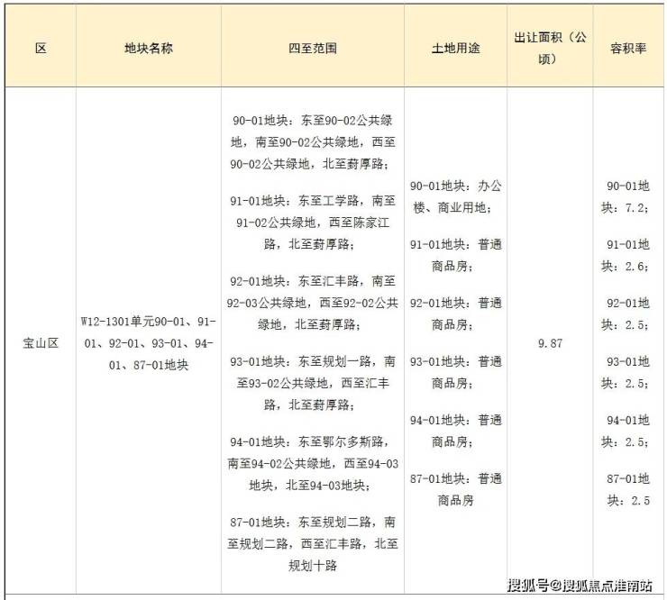 6月,宝山区W12-1301单元90-01、91-01、92-01、93-01、94-01、87-01地块就将出让了。