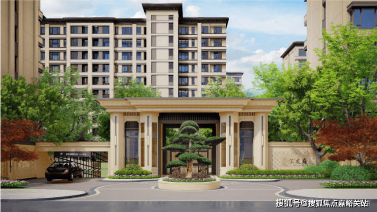 项目整体采用新中式主义风格,选用高档石材+真石漆,东方韵味十足,建筑的色彩、比例,仪式感与对称性,非常恢弘!