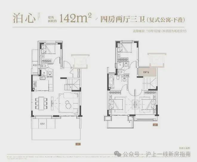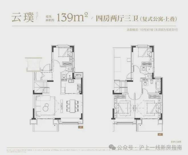 项目叠墅户型有建面约142㎡下叠,建面约139㎡上叠。