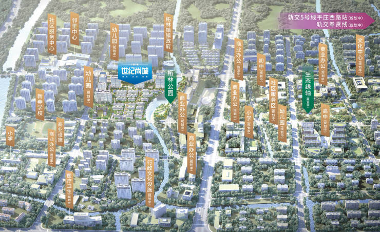 中国中铁·世纪尚城位于上海高速发展中的五大新城之一的奉贤新城南扩圈,柘林核心区。区域承接奉贤新城南拓发展任务,根据规划区域将建设成为生态、生产与现代生活有机结合的南上海“绿色规划”示范区。项目正位于此核心位置,一路之隔柘林镇政府。紧邻10万方贝港滨水公园,以央企品质、大国匠心,礼献生态宜居生活,盛启南上海时代墅居理想。
