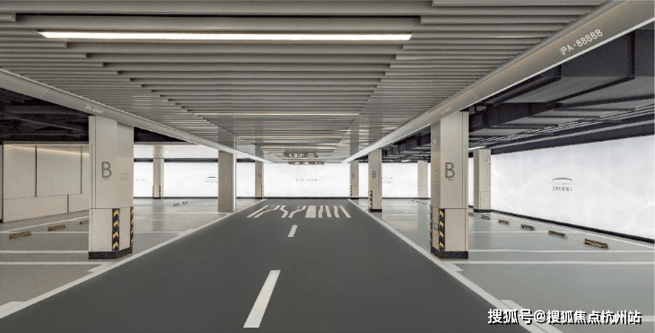 同时1号楼地下车库大堂,吊顶采用铝合金,并镶嵌序列条灯,打造星空顶造型。
