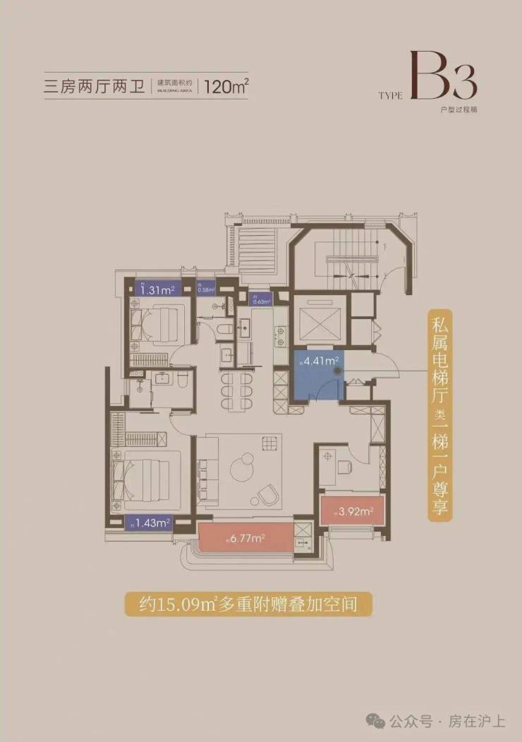 这意味着百平米的业主也能享受一整个独立的电梯厅,这是私密性的保障,更是生活的拓展。