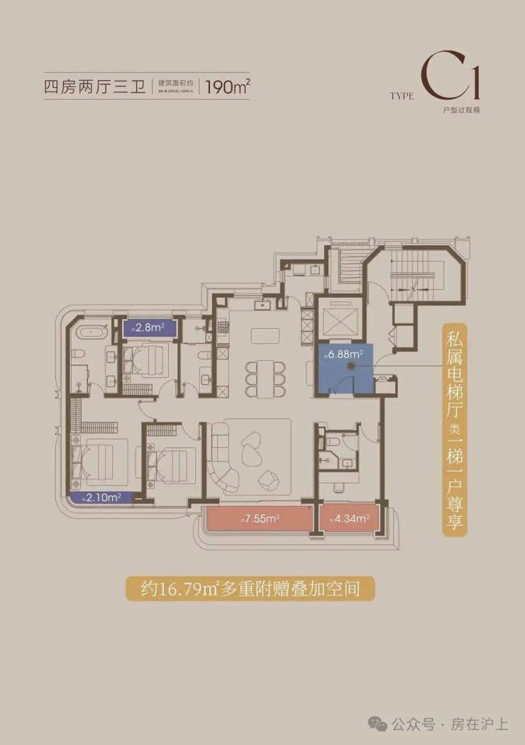 同时,这个户型拥有一个好户型应该有的所有特质:一梯一户、三阳台、主卧豪华套房、中西双厨...妥妥的终极改善产品。