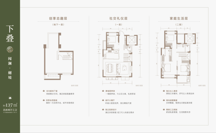 下叠附带全功能的地下室,可以打造成百变储藏室、茶室、会客厅、多功能影厅等。