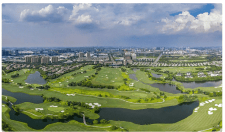 此刻正站在时代发展的风口之上。项目毗邻约3000亩城市绿肺——汽车博览公园和上海第二大高尔夫球场,为居者打造了一座“天然氧吧”。
