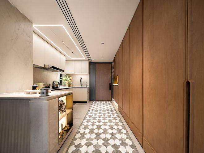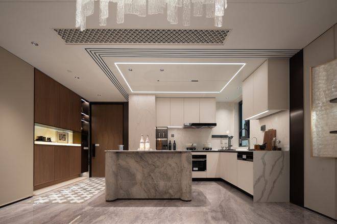 走进海上·清和玺售楼处电话:400-9699-334✨【官方认证】✅✅✅的厨房,墙面岩板通铺,视觉效果超棒。
