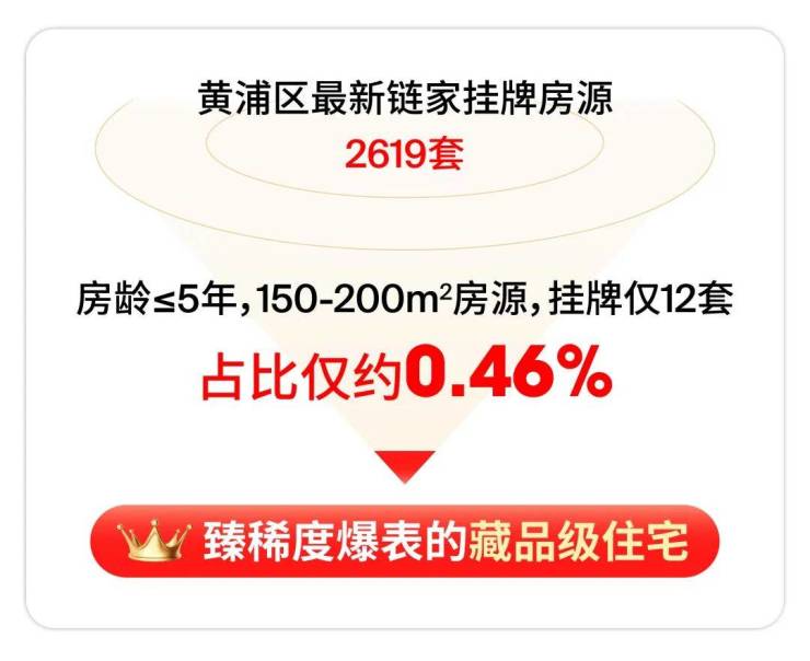 目前链家网上黄浦区共有约2619套挂牌房源,其中房龄≤5年的150-200m²房源只有12套挂牌