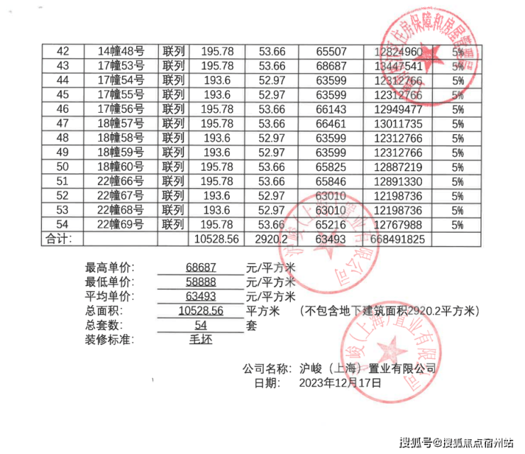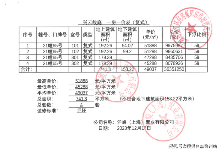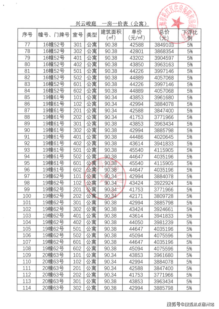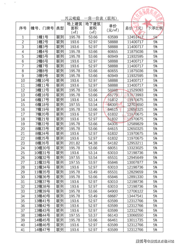 一房一价表: