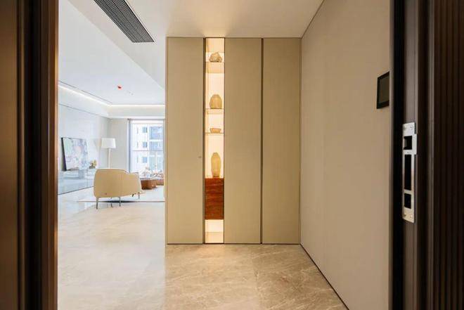 市面上不少新盘项目都是共用电梯前室,业主隐私或多或少受干扰。而昌平云岸是准1梯1户的梯户比配置,业主能拥有相对独立的前室,梯门一开,家的温暖迎面而来,家的玄关尺度,延伸至电梯厅。不仅出入更具尊贵感、仪式感,也方便收纳、种植花草、存放出入工具等。