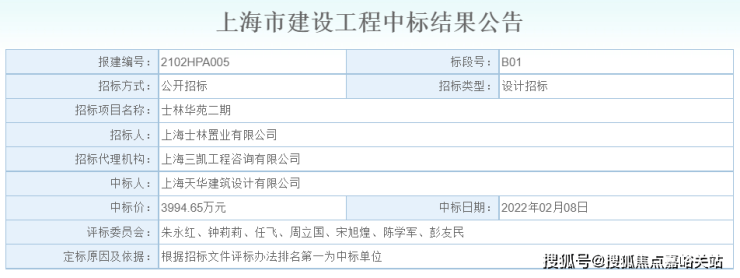 2022年2月8日,上海天华建筑设计有限公司以3994.65万元中标士林华苑二期地块设计项目!