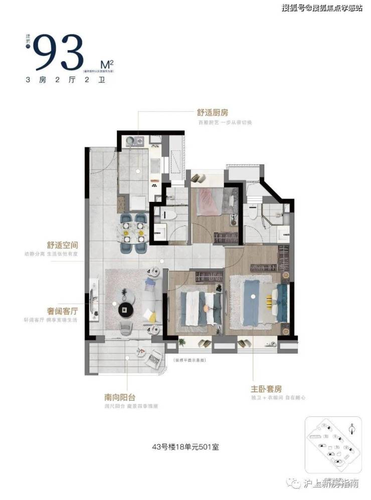 建面约93㎡3房2厅2卫