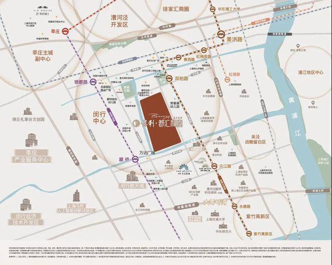交通出行上,项目打造“地铁+自驾+公交”的立体交通网络,便捷串联全城:地铁方面,直线距离15号线双柏路站仅约500米,步行6-8分钟即可直达,15号线作为上海西南重要的南北向“换乘王”,向北4站直达徐汇核心,9站抵达漕河泾开发区,可与1、2、3、5、7号线无缝换乘,快速通达徐家汇、静安寺、人民广场等核心商圈;未来19号线建成后,在景洪路站换乘可4站前滩、6站后滩,直达陆家嘴CAZ核心,无论是科创人才通勤还是日常出行,都极为便捷。自驾方面,紧邻虹梅南路高架、沪金高速、嘉闵高架,形成“三横三纵”路网,20-30分钟可达徐家汇、虹桥商务区等核心区域,通勤高效便捷;周边500米内有8条公交线路,满足区域内短途出行需求。