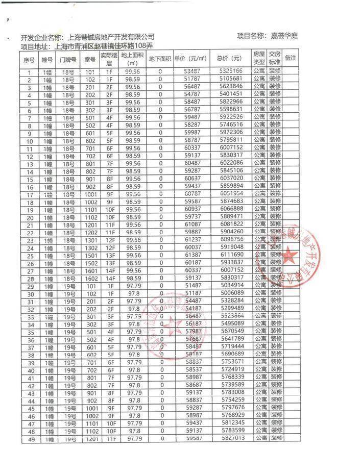 一房一价表
