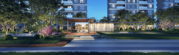 社区景观方面,项目以现代手法结合传统精髓的创新设计与纯净的星空相互融合, 将建筑、文化、艺术与景观完美交融。