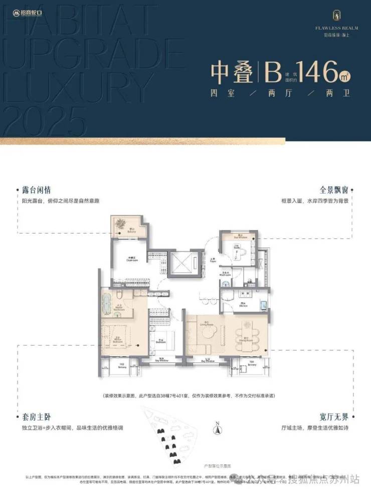 招商臻境二期建面约95㎡三房高层,以及建面约145-148㎡叠拼产品!
