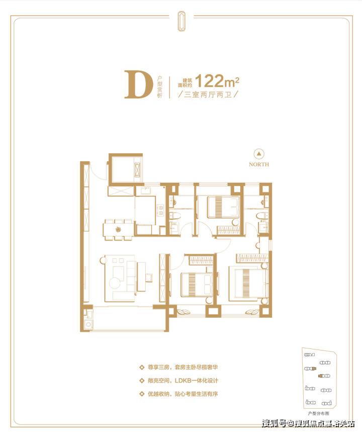 项目共计规划8栋14-18F高层住宅,规划可售住宅套数528套,主力建面约94-122㎡3房,功能齐全,足够匹配不同家庭结构的需求。
