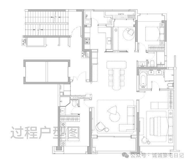 主卧配置步入式衣帽空间、双台盆+大浴缸主卫。