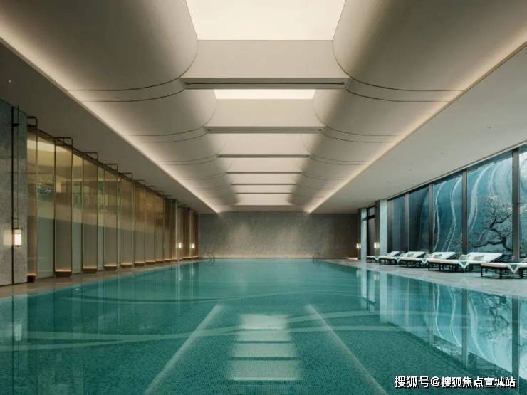 三进 青漪园:青漪园是核心庭院,它围绕着“水”展开,体现了青浦“水文化”的特点。一座隐桥从水面延伸而出,由瀑布连接直至下沉庭院,为室内游泳池提供了良好光线和隐谧美景。