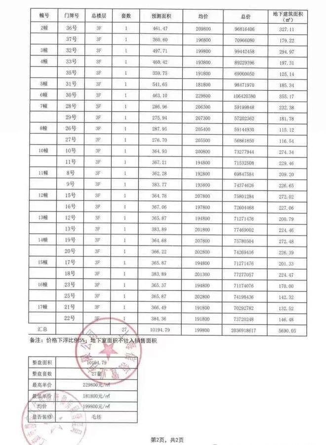 风貌别墅 一房一价表: