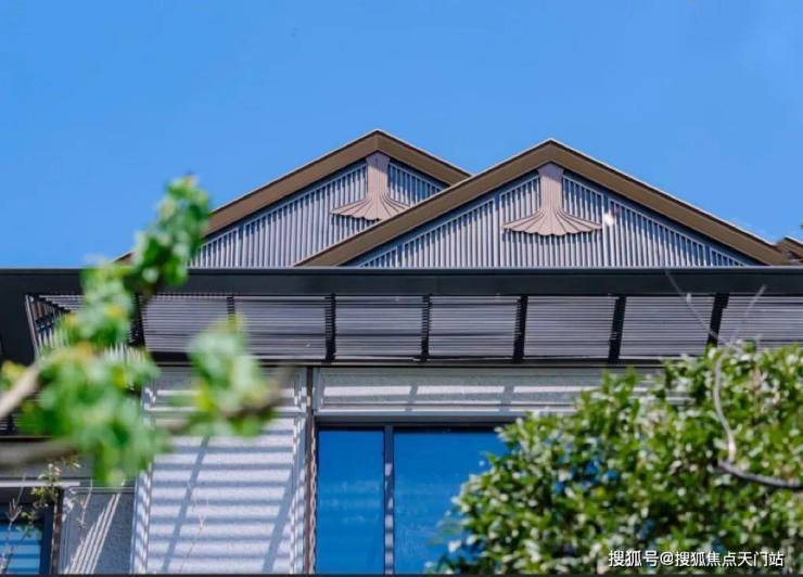 建筑上,宋式三段式立面,深檐挑角,东西双向宋风窗扇、檐下三重宋韵装饰构件、歇山顶(联排)等宋韵呈现,再现宋式建筑风骨;立面横向采用大面玻璃幕墙,实现极致3:7窗墙比的同时又呈现出现代东方审美。