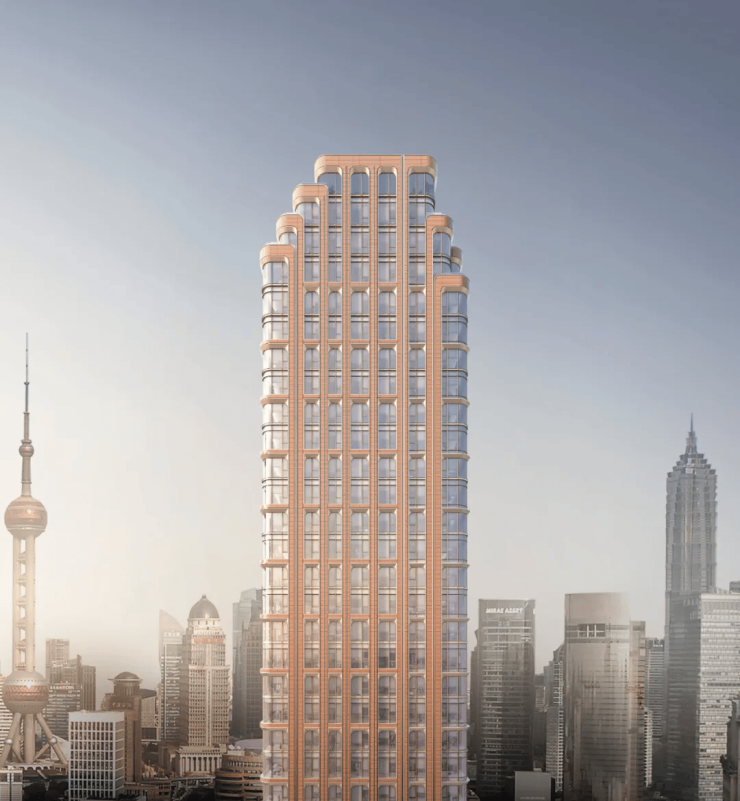 在本次推出的高层产品中,极具标志性的城市天际封面是一大亮点。设计团队为此深入历史风貌区,借鉴了海派经典建筑中的Art-Deco风格形制,砖红立面纹理及风貌线条色泽,并将这些美学符号向上生长。建筑顶部还巧妙借鉴海派建筑的收分手法,塔冠部分逐级向上退台,处处皆倾注匠心。