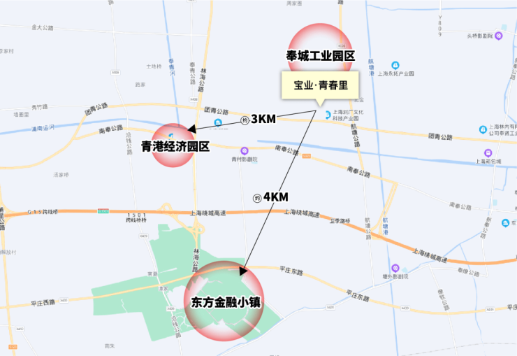 项目周边拥有三大产业园区,包括奉城工业园区、 青港经济园区、东方金融小镇。